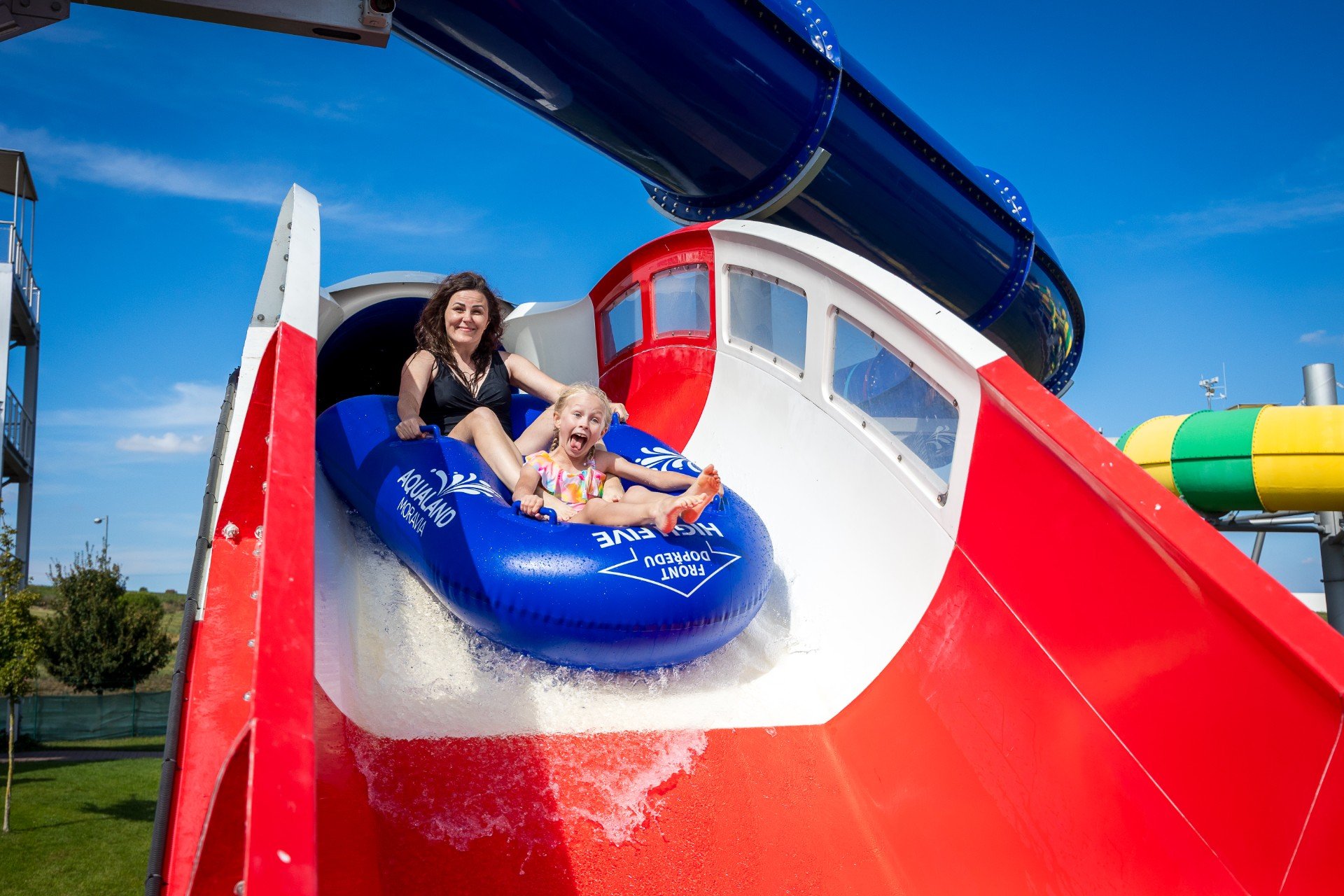 - V Aqualandu se projedete nejen dolů, ale i nahoru! A to rovnou pětkrát. Jízda, kterou zažijete jen na pár místech po celém světě. Přesně o to se postará legendární tobogán High Five.