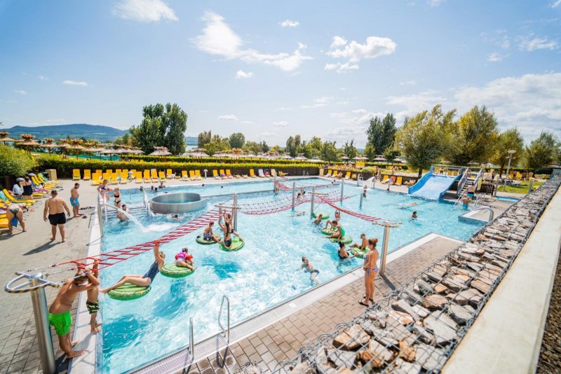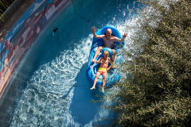 - Že chcete i trošku klidu? Třeba s drinkem v ruce, ale pořád ve vodě? Tak si chyťte raft a vyplujte na Lazy River – klidnou řeku, která vás povozí po celém letní areálu.